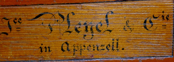 Étonnante signature du facteur à l’emplacement habituel: « PLEYEL & Cie / in APPENZELL »…